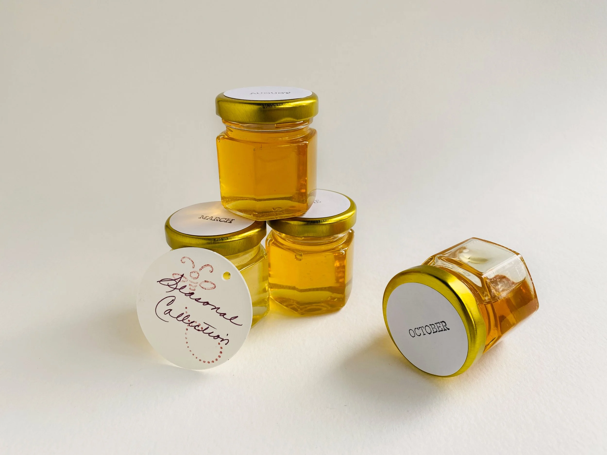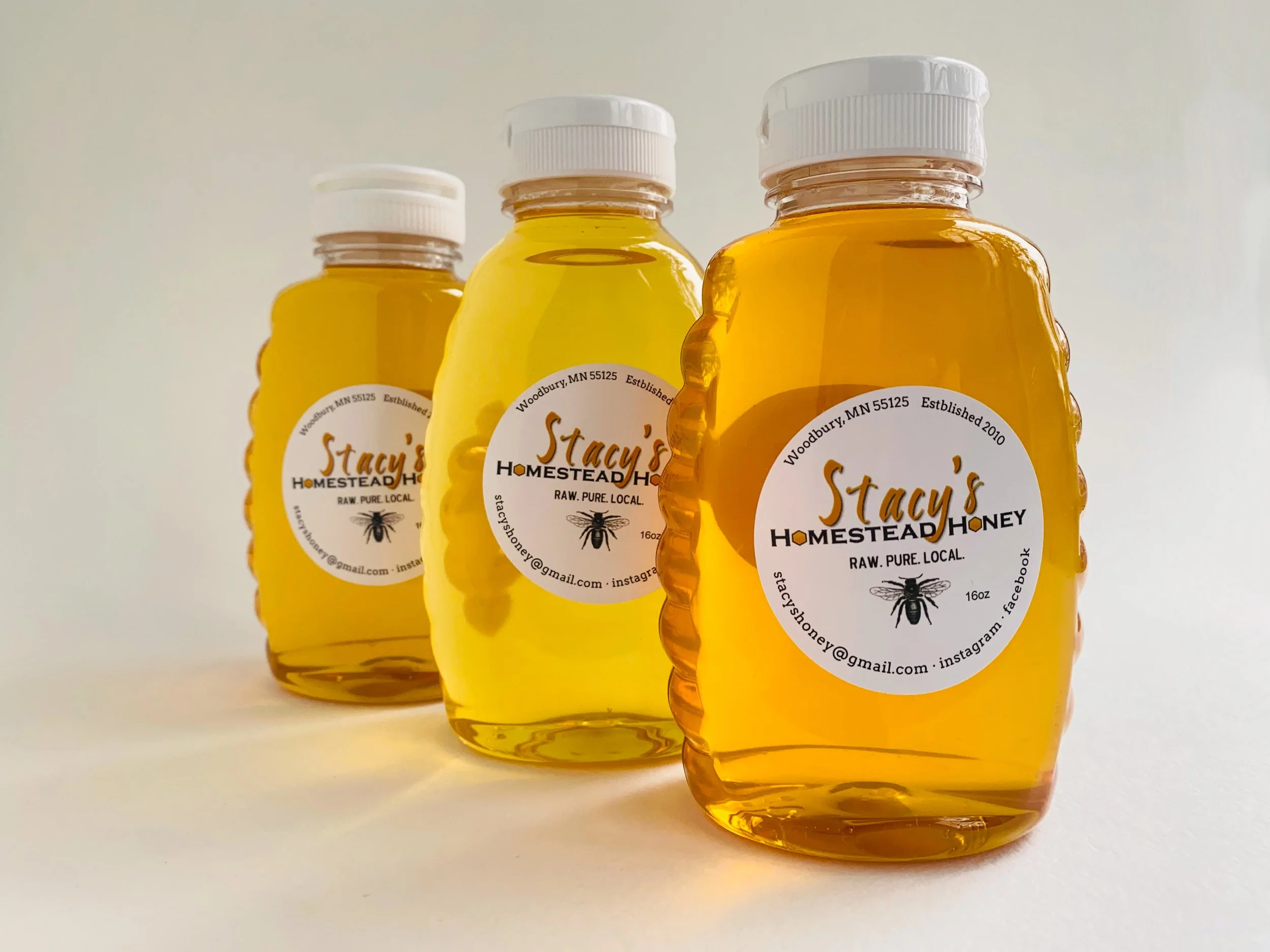 Small batch extractions of our honey throughout the seasons means we can enjoy different flavors of honey from one apiary. Our spring honey is the lightest in color and has a delicate flavor. Apple blossoms and spring yellow clover are the main nectar sources for spring. Our summer honey is slightly darker, reflecting Basswood blooms, as well as our wildflower blooms. Our fall honey has an amber tone, colored by Goldenrod, late fall raspberries, and asters.